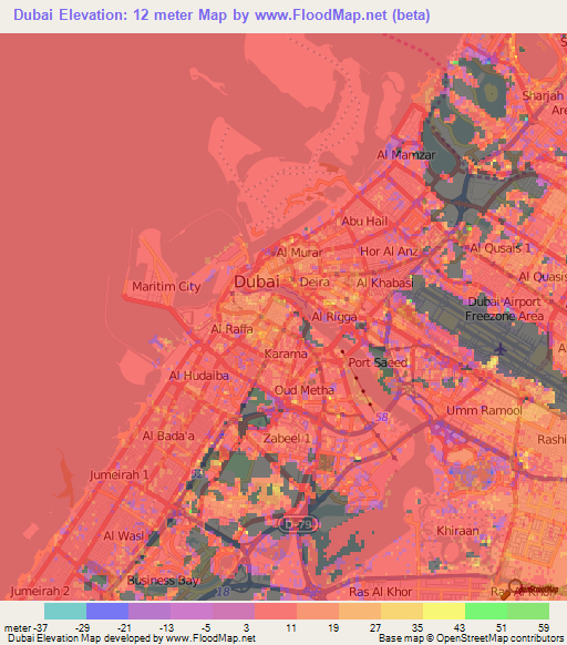 Elevation Of Dubai United Arab Emirates Elevation Map Topography Contour