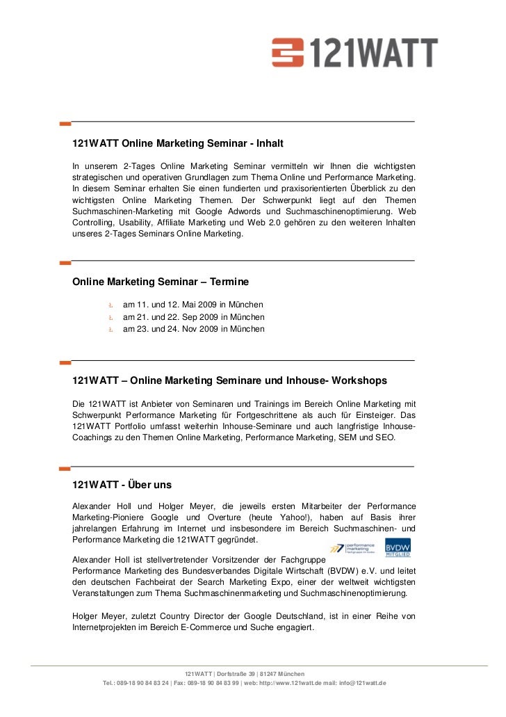 Online Marketing Seminar 121watt