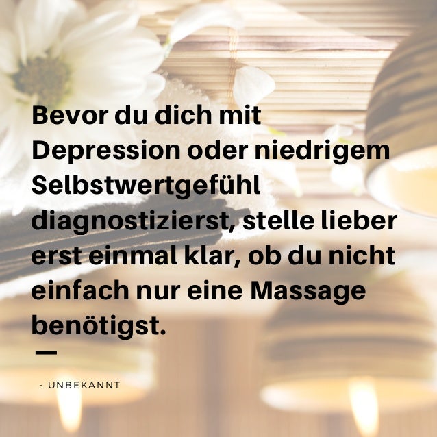Zitate über Massage, Entspannung und Ruhe 2518 Blissmassage Masseure sind wie Musiker, die die gleichen Noten studiert haben, aber absolut unterschiedliche Musik erschaffen Einer wird Jazz schreiben, der zweite Klassiker, und der dritte wird etwas völlig Neues schaffen Gabriel Ascul, Master of massage. 14 Zitate zum Thema Ruhe und Entspannung Burkhard Heidenberger schreibt zum Thema „Geschichten & Weisheiten“ Viele von uns suchen Ruhe und Entspannung in der doch sehr hektischen und schnelllebigen Zeit Passend dazu habe ich einige Zitate gefunden. Ruhe Sprüche die zum Nachdenken anregen Ruhe Sprüche sind weit mehr als alltägliche Sprüche oder Zitate Sie sollen für Ruhe sorgen und zum Nachdenken anregen Genau das ist heute wichtiger denn je Das Denken wird uns „abgenommen“ und Momente in denen wir komplette Ruhe haben werden reduziert – der Alltag ist schuld.