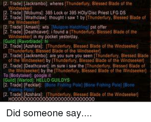 Trade Chat Thunderfury Blessed Blade Of The Windseeker World Of Warcraft Mmorpg Com Mmorpg Com Forums